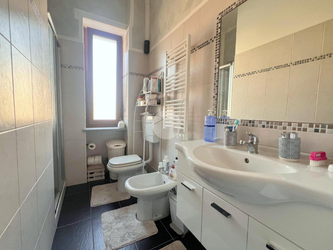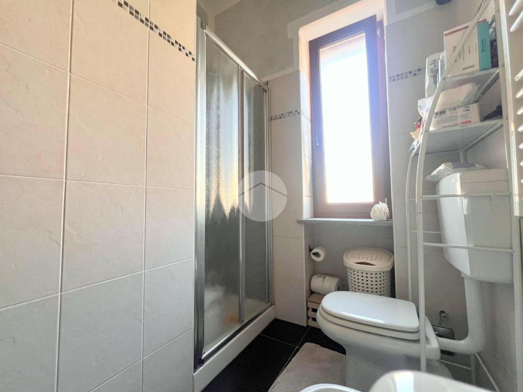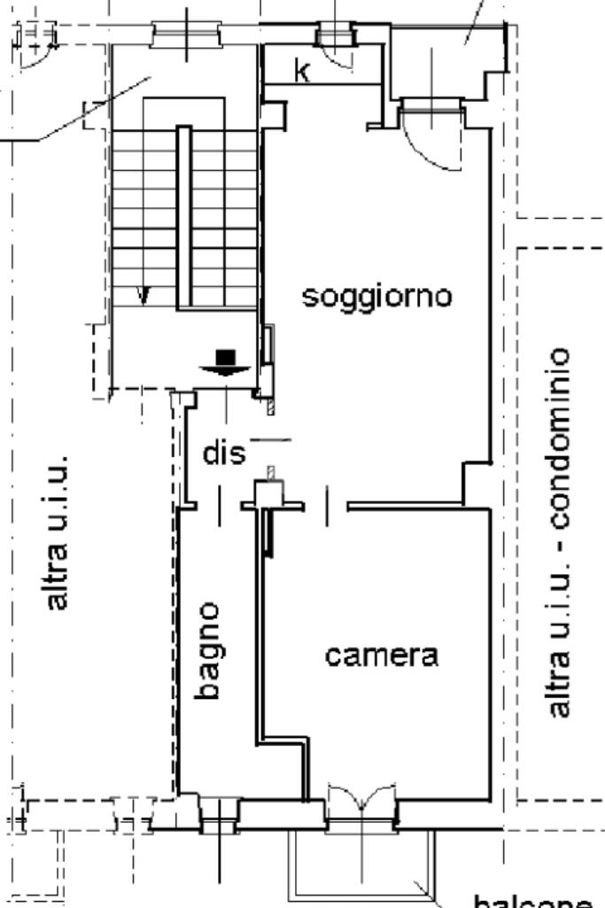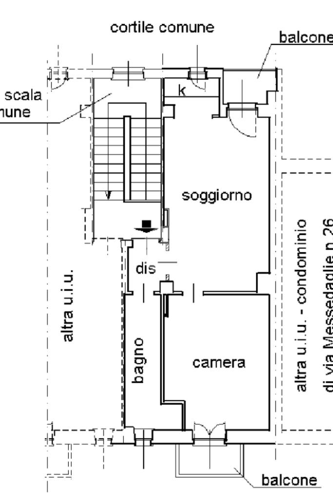 Entrando si trova subito il disimpegno, a seguire il soggiorno living con la cucinotto. L'ambiente risulta molto soleggiato. Da qui si può accedere al primo balcone della soluzione.