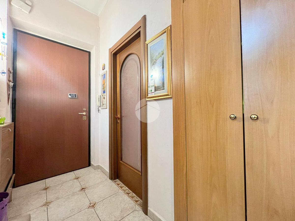 Dal portoncino blindato si accede al disimpegno che accompagna alla grande e luminosa zona giorno.