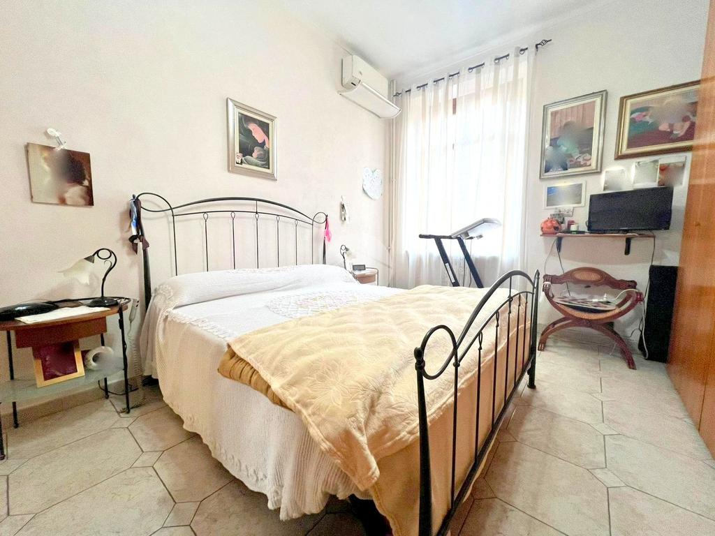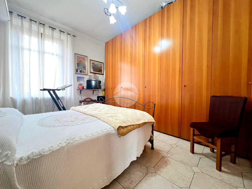 Seguono le due ampie camere da letto, una della quali con accesso sul primo balcone che affaccia in via Borgaro.